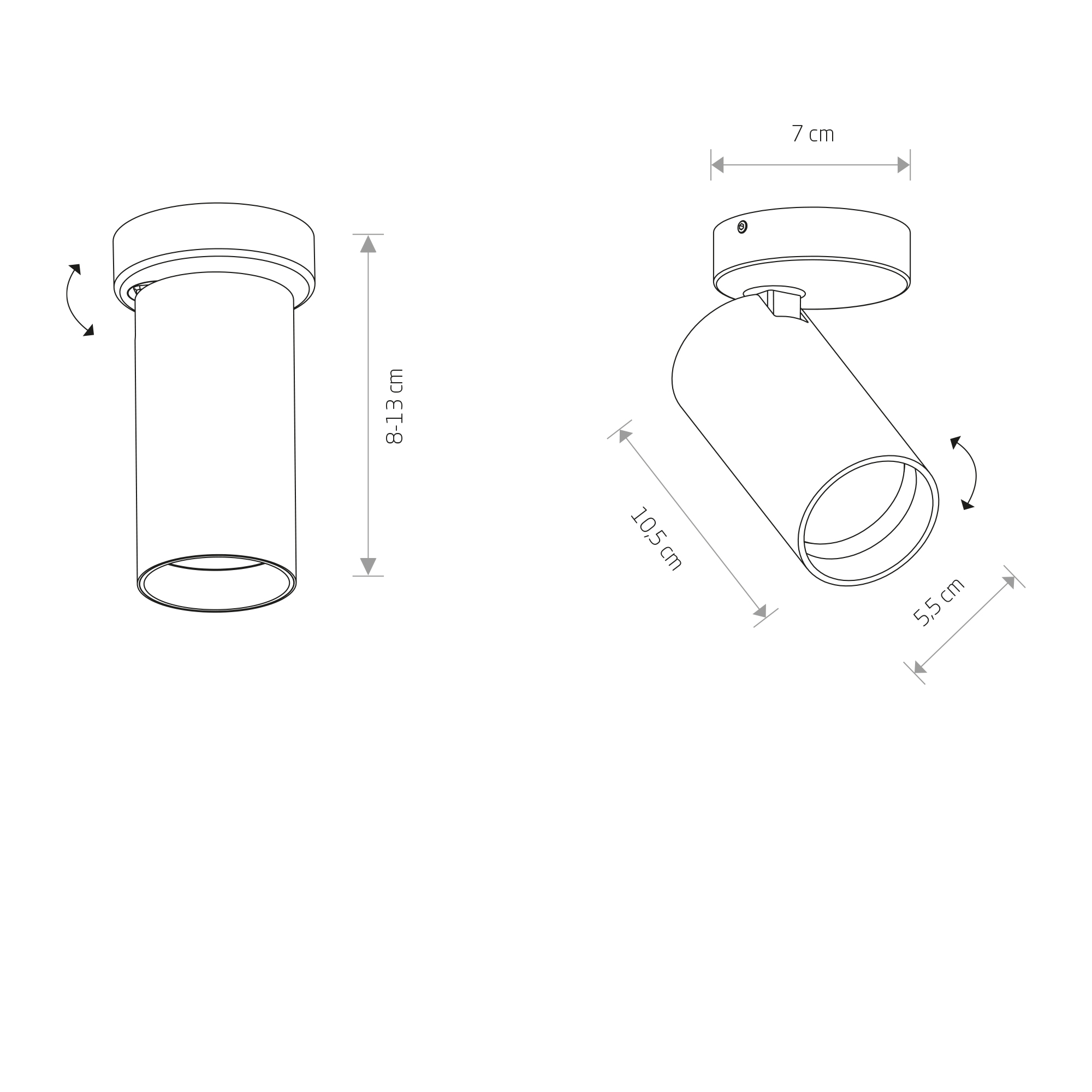 Beskrivelse Påbygningsspot, cylinder med justerbar sokkel